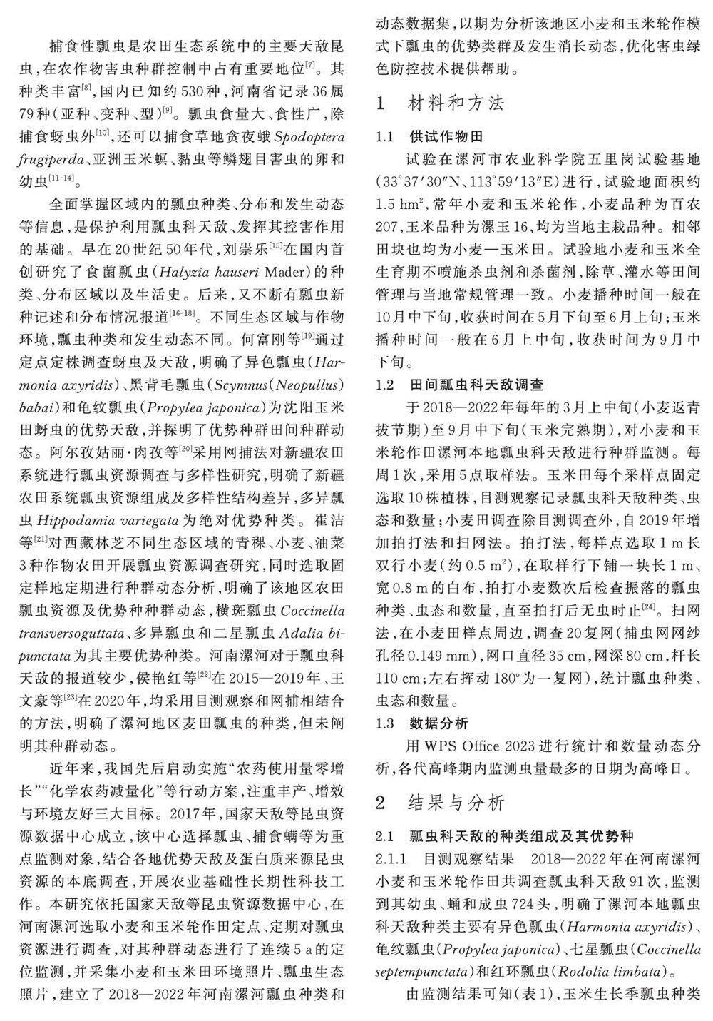 河南漯河小麦和玉米轮作田瓢虫科天敌种类及种群动态