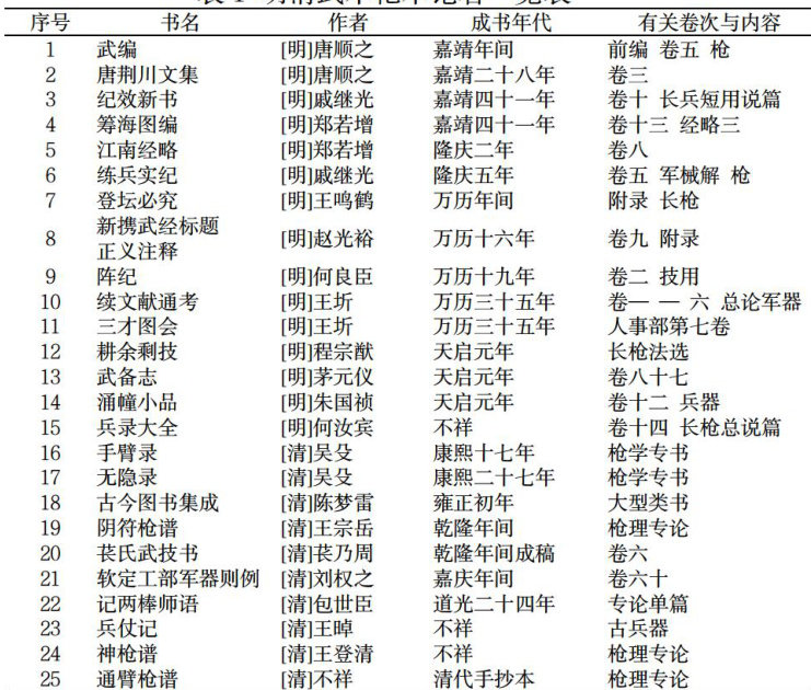 枪,自古被称为“百兵之王”,在武术体系中有着重要的地位,明清时期尤重枪法,尊枪为“艺中之王”,认为“长技无逾此”。明清时期是古代武术繁荣并走向成熟的重要时期,不仅形成了武术功法、套路技术、技击对抗三位一体的基本技术体系,同时武术理论也得到了巨大发展,留下了众多经典的武术论著。当时的论著所论述的枪、刀、拳术等各项专项武术的技术方法与理论,都具有很高的水平,是极为珍贵的武术文化遗产2。(剩余6461字)
