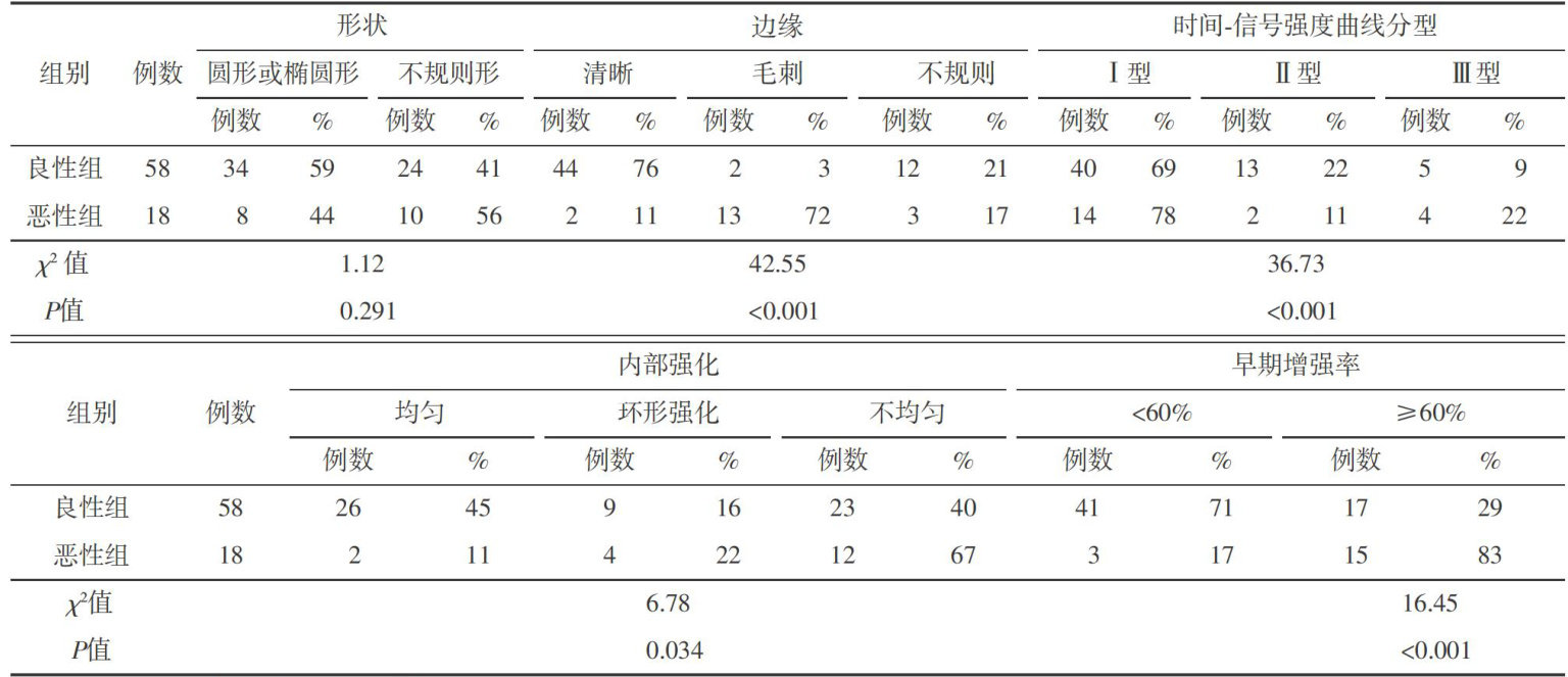 动态增强磁共振成像联合X线钼靶检查对直径⩽2cm乳腺肿块良恶性的鉴别诊断价值