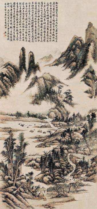 启功 仿米家云山图