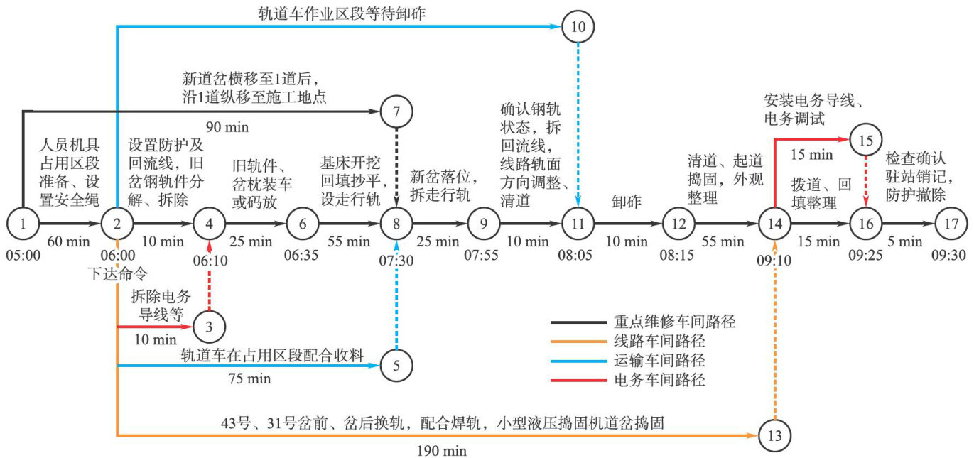 摘要:更换道岔是工务系统最复杂的施工项目之一,过去施工主要依靠人工,近年来随着挖掘机、轨道车、小型液压捣固机等机械的运用,施工组织流程、工序时间节点、质量标准等均发生了较大的改变,但并没有形成固定的模式和标准。本文总结近十年来徐州工务段通过机械更换单开道岔的施工经验,确定了施工组织流程和各工序关键时间节点,明确了各环节质量标准,同时介绍了大型机械使用和工机具创新应用。(剩余4977字)