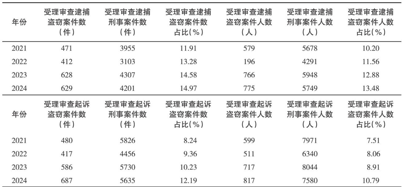 ——以S市检察机关2021—2024年盗窃案件办理情况为例