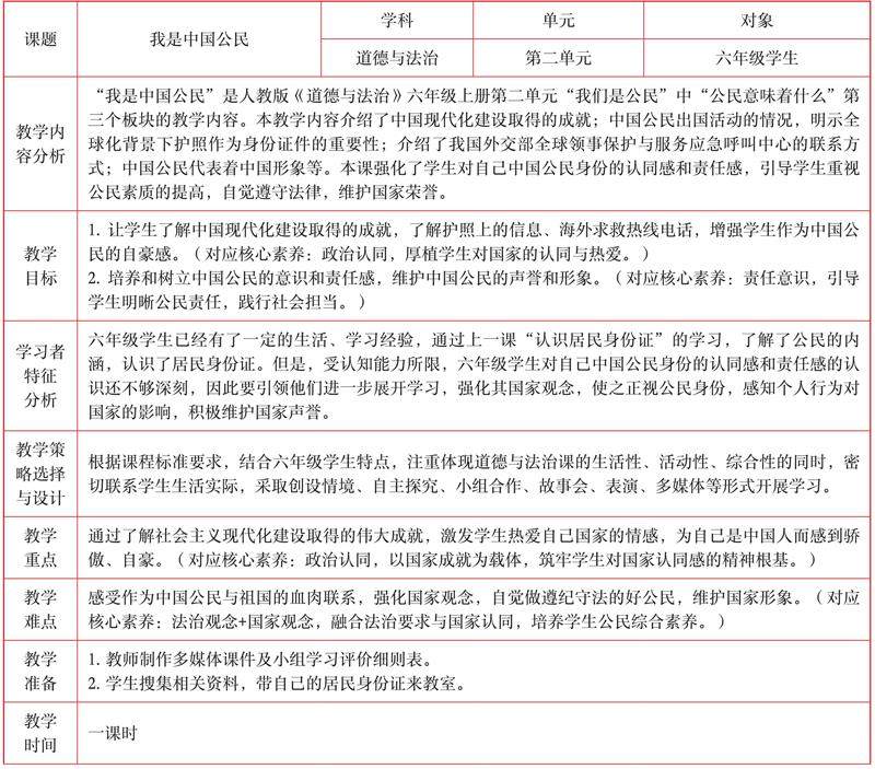 “我是中国公民”教学设计