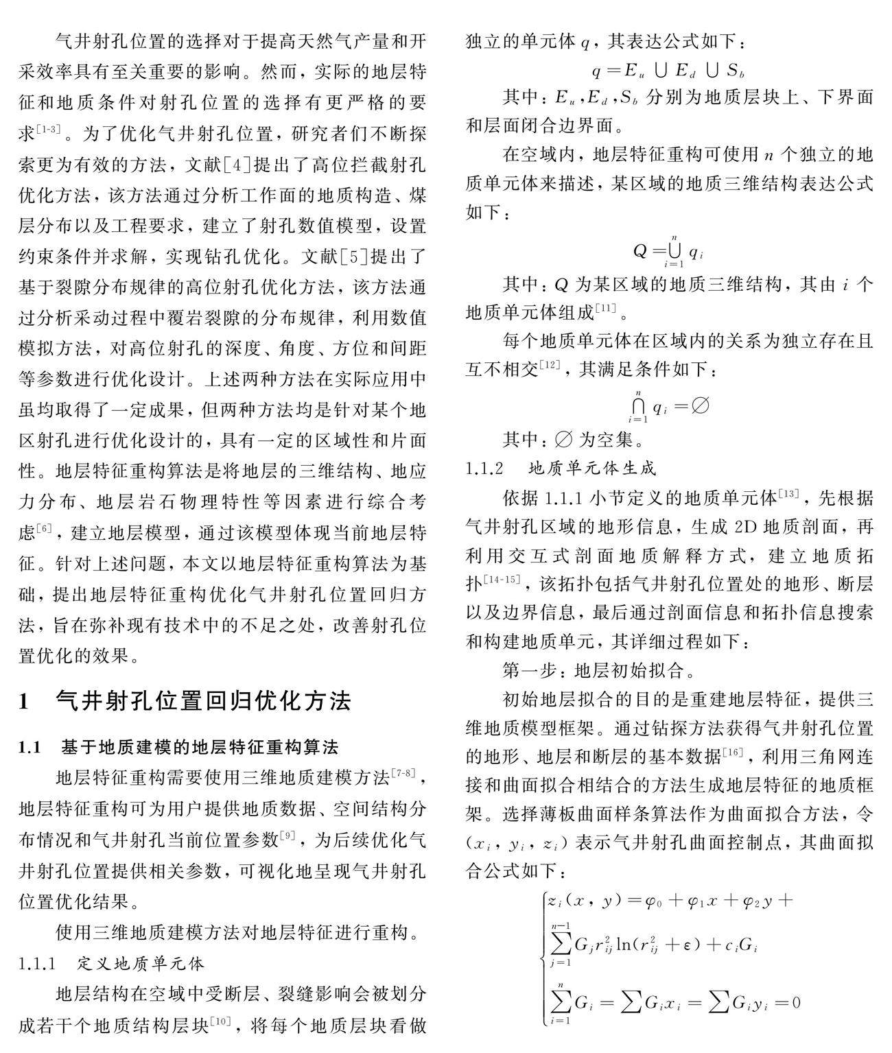 摘要: 气井射孔位置关系到天然气开采过程中流体是否可以顺利流出, 也是直接影响油气井产量的重要因素。为使气井位置满足油气开采要求, 本文提出基于地层特征重构算法的气井射孔位置回归优化方法。该方法利用MAS(Full Name of MAS Management System)地质三维建模软件, 通过定义地质单元体, 以及生成地质单元体后得到的气井射孔位置地层特征和相关数据, 依据该数据建立气井射孔位置回归模型, 通过该模型描述气井射孔位置与实际位置的偏差关系, 再使用遗传蚁群混合算法对气井射孔位置回归模型实施优化求解, 实现气井射孔位置回归优化。(剩余15173字)