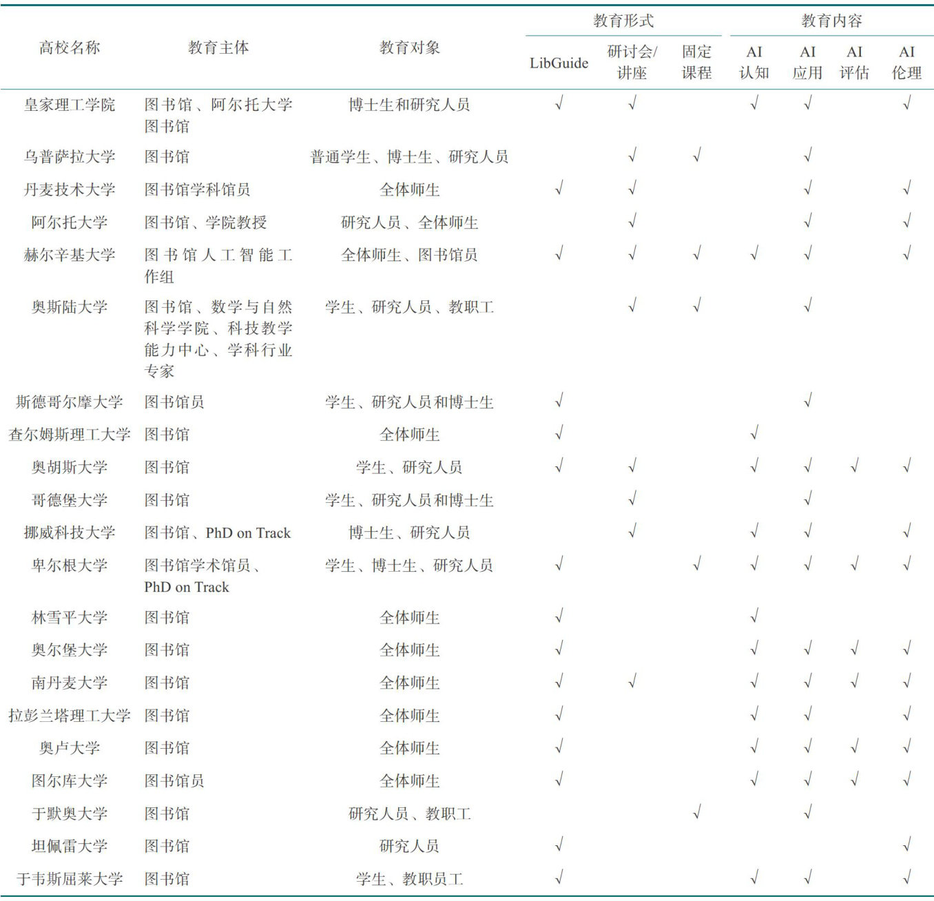 北欧高校图书馆人工智能素养教育现状调研及启示