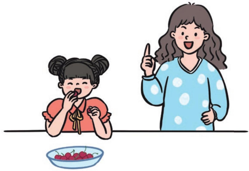 zhou mo dudu hé biao jieyiqrqukan wang wai p6周末,嘟嘟和表姐一起去看望外婆,wai pó géi ta men xileyida dié ying tao外婆给她们洗了一卞碟樱桃。