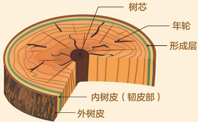 你们见过被锯开的大树桩吗?那截面上一圈一圈的纹路,就像大树的 “指纹”,它有一个大家耳熟能详的名字一年轮。其实,年轮还有两个“小名”,叫生长轮和生长层。这些圈圈可不是随便长出来的,它们是大树成长的“日记”,藏着好多有趣的故事。接下来,就让我们一起钻进大树的身体里,看看年轮到底是怎么“画”出来的吧!