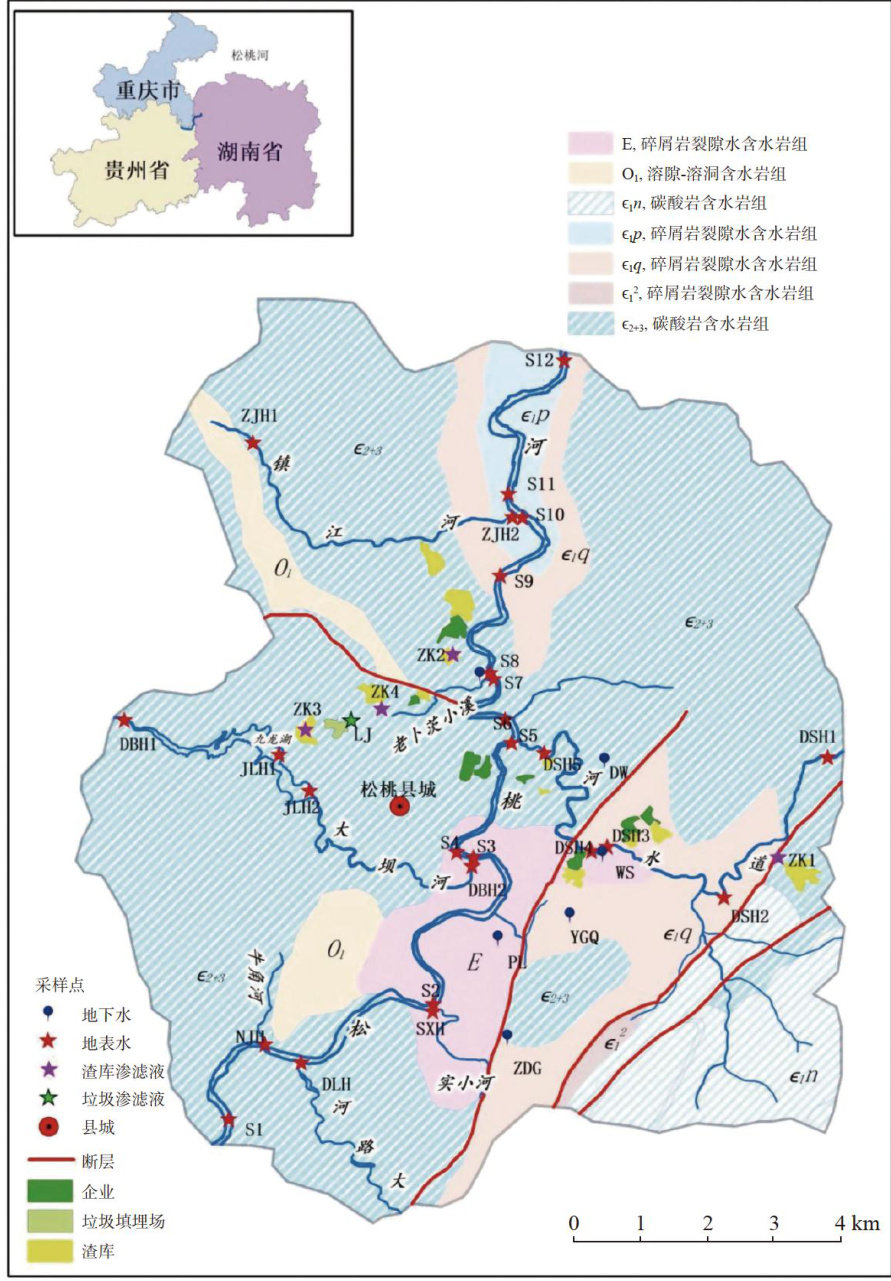 创新点:选取受锰工业污染严重的松桃河流域为研究对象,通过水化学及数学解析的方法确定了不同源对松桃河流域水化学特征的控制因素,并补充了渣库渗滤液的水化学特征。