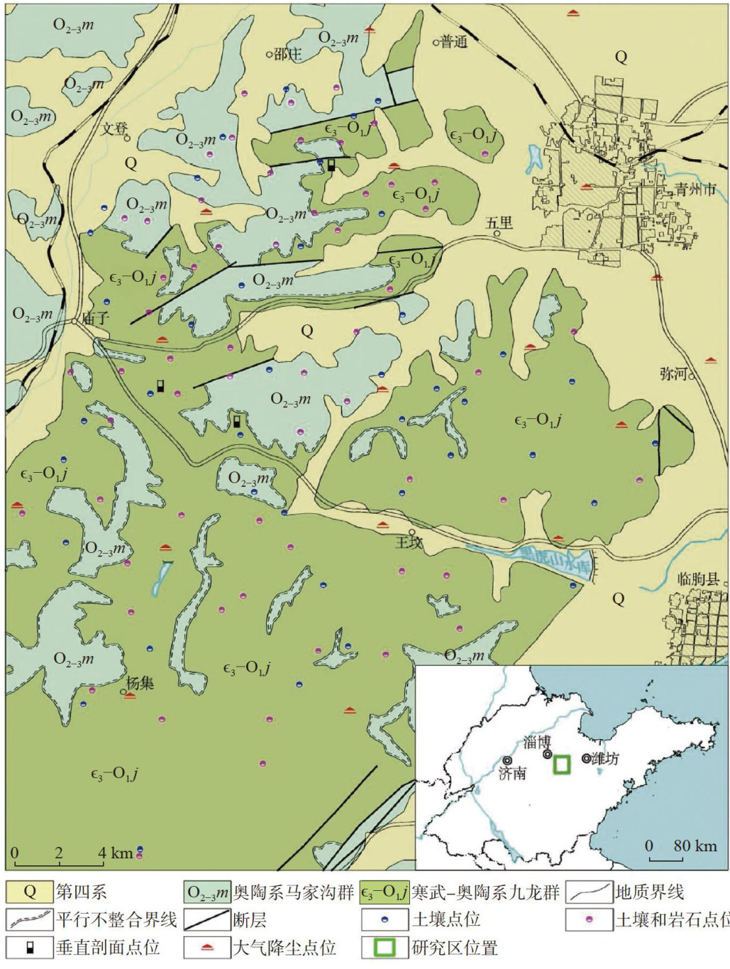 创新点:系统整合岩石—土壤—大气降尘等多介质数据,结合富集因子、主成分分析、降尘年增量模拟计算及相关分析,分析鲁中碳酸盐岩区土壤重金属污染特征,探讨其来源,明确其受控因素,为土壤重金属源解析提供新视角。