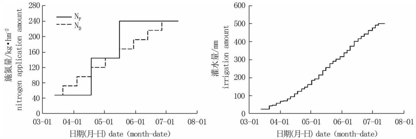 ABSTRACT: Inorder toclarifythe effectsofdrip nitrogenfertigation combined with biocharonthephotosynthetic characteristics and yieldoffacilitypepper.Atwo-factorrandomized block design wasused to study the effectsof water and nitrogen management treatments [furrow nitrogen fertigation (NF ),drip nitrogen fertigation (ND)] and biochar treatments [no biochar addition (B0) ,biochar addition (B1)] on yield,growth and photosynthetic characteristics of pepper by facility field experiment. The results showed that compared with NFB0 , NFB1 , NDB0 and NDBl increased dry matter accumulation rate of pepper during each growth period,resulted in increased yield,and NDBl increased the most 41.65% ). Meanwhile, NFB1 , NDB0 and NDBl increased leaf area per plant,leaf SPAD,net photosynthetic rate, stomatal conductance, maximum photochemical eficiencyandactualphotochemical eficiencyatthefullfruit stageof pepper,andreduced intercellular arbon dioxide concentration,resulted in improved plant photosynthetic characteristics,and the improvement effect of NDBl was the best. Pepper yield was significantly negatively corelated with leaf intercellular carbon dioxide concentration,and significantly positivelycorrelatedwith the other indexes mentioned above.In conclusion,drip nitrogen fertigation combined with biochar improved plant photosyntheticcharacteristics to promotepepper growth,resulted in increased yield,andthe improvement effectof drip nitrogenfertigation combined with biochar was greater than thatof solo drip nitrogen fertigation and biochar addition.