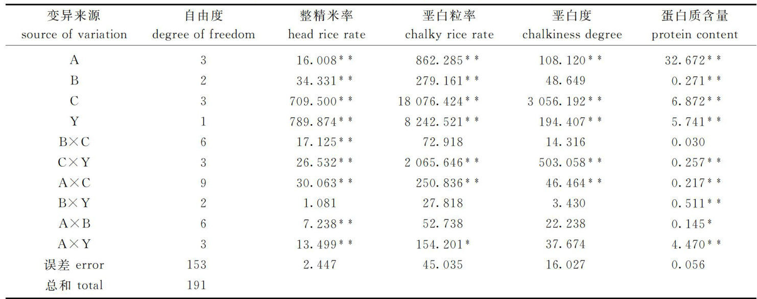 氮肥施用量和栽插密度对迟熟中粳品种稻米品质的影响