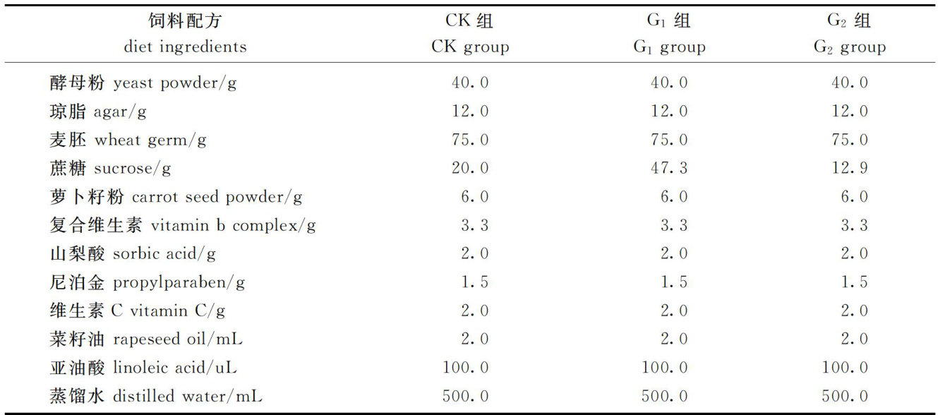 ABSTRACT:The diamondback moth (Plutella xylostella)is a major agricultural pest. Studying the efects of natural and artificial diets on the growth,development,and physiological biochemistry of P .xylostella larvae aims to optimize artificial diet formulationsand provide higher-qualitytestinsects forscientific research.Theresults showedthat,compared to larvae fed with a conventional artificial diet,those fed with a natural diet exhibited that over 50% higher total sugar and total protein content and a 14.3% decrease in fresh weight. After adjusting the glycogen ratio in the conventional artificial diet,significant changes were observed in larvaltotal sugar and protein content. Increasing glycogen proportion significantly raised totalsugar levels,and decreasing glycogen proportion significantly reduced both total sugar and protein content.Additionally,the groups fed with a higher propertionof glycogen-sugar diet showed significantlylower survival and pupationratescompared tothe control group.The groupsfed with alower propertionof glycogen-sugar diet exhibited significantly higher adult emergencerates.Inconclusion,diferenttypesof diets significantlyafectthe development and physiological biochemistry of P . xylostella larvae. Adjusting the glycogen ratio can influence larval phenotypic plasticity, thereby providing test insects of varying quality to meet the demands of scientific research and other applications.