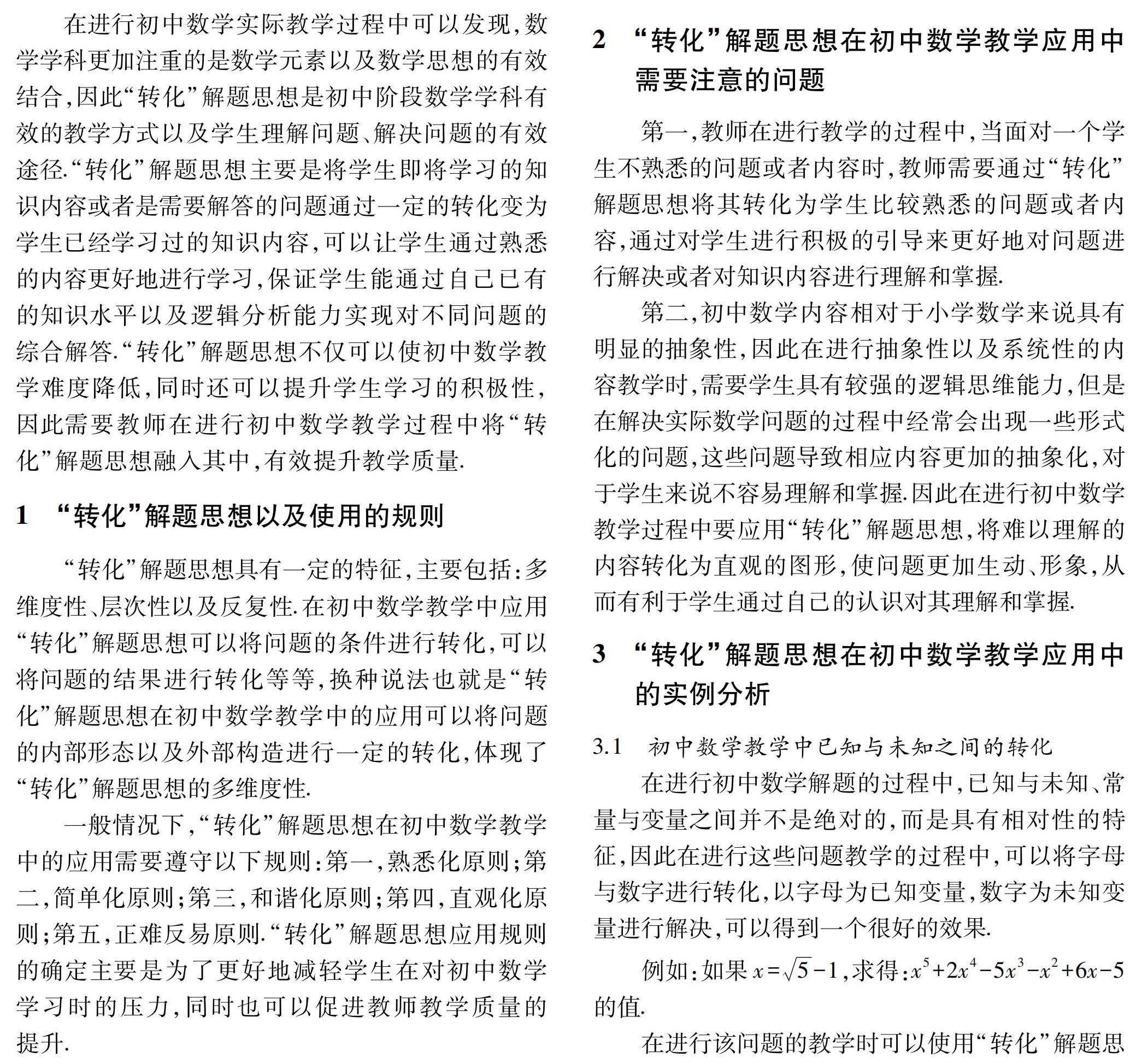 初中数学巧妙“转化”的解题思想与教学应用探索