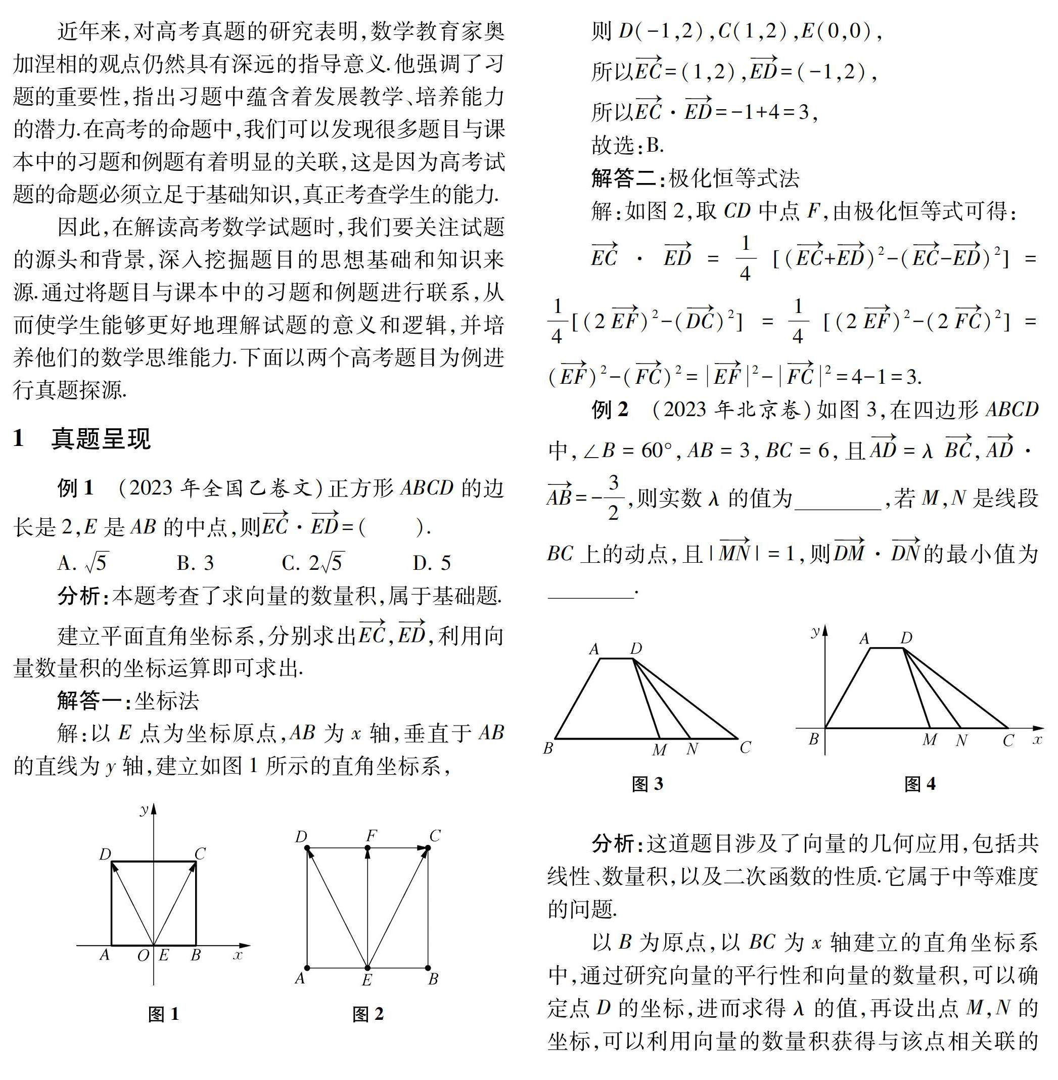 关键词:教材;高考真题;解法探究