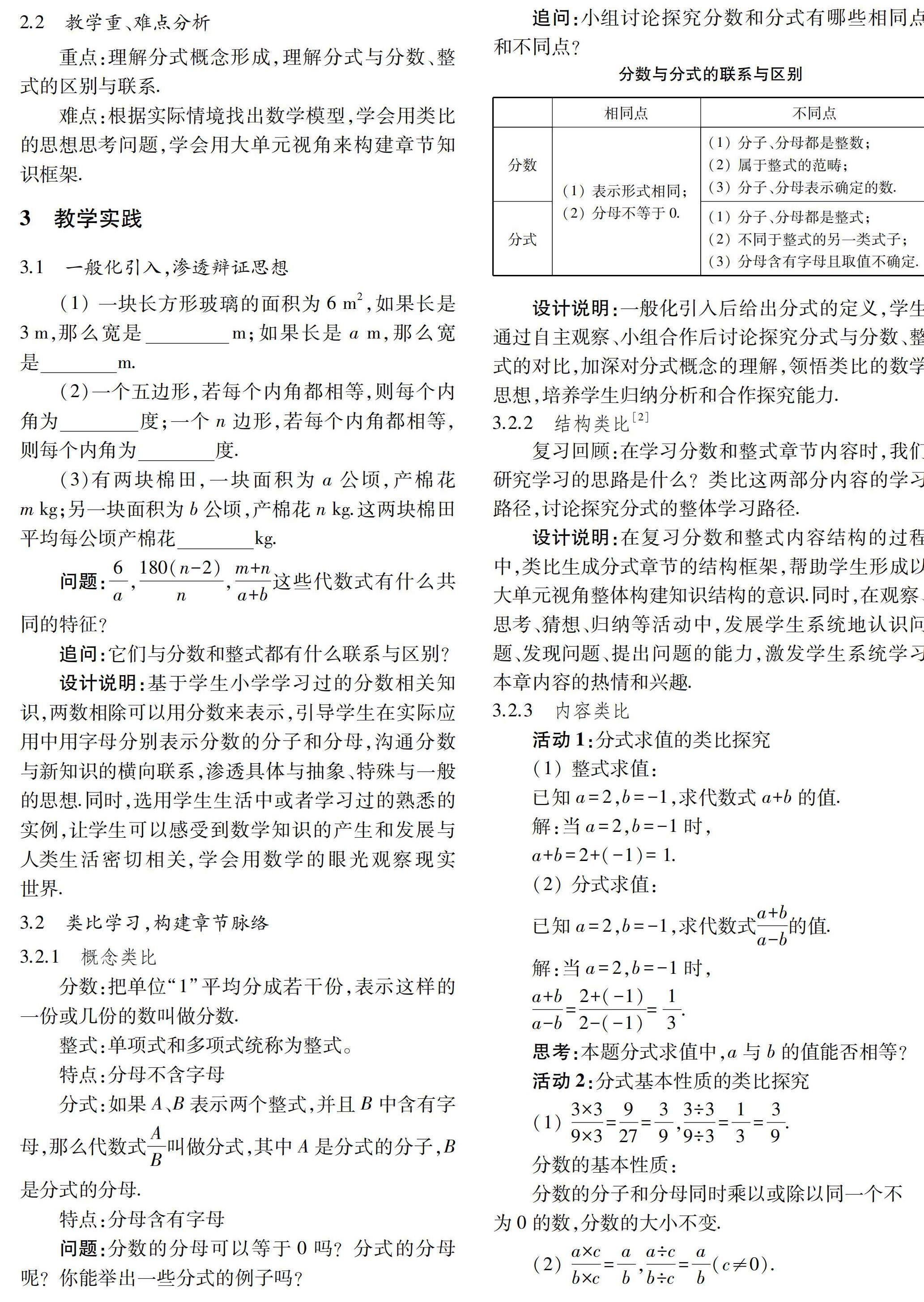 摘 要:大单元教学强调运用整体思维和视角对零散的知识内容进行有逻辑地整合、重组、开发;章统领课是在主线统领的基础上,以大单元视角引导学生构建整章知识框架.本文通过“分式”教学统领课的设计、介绍与说明,强调渗透数学思想方法,提升学生思维能力,发展学生核心素养.