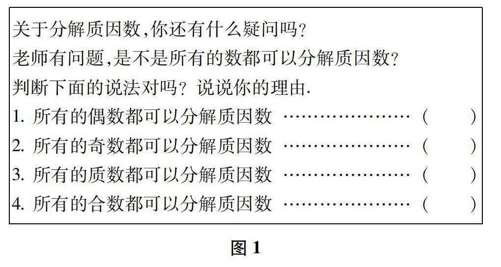 如:五下在教学《质因数和分解质因数》一课时,课的末尾进行了这样一个设疑与判断的设计(见图1),引导学生深入思考,对分解质因数有了更全面的认识.