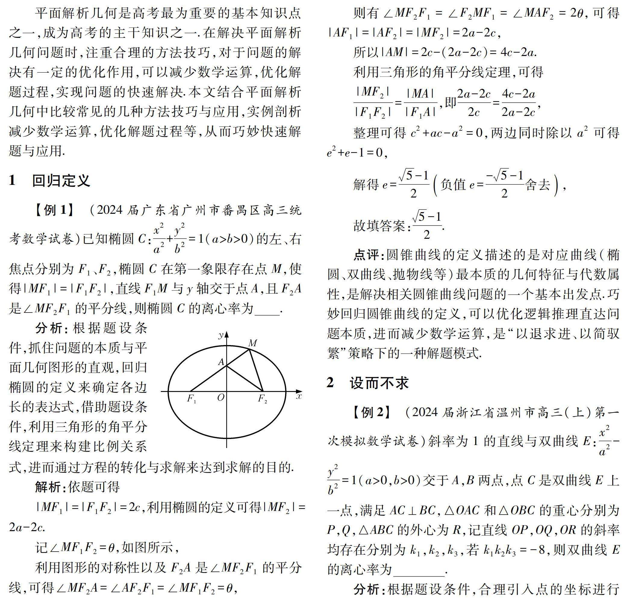 关键词:解析几何;圆锥曲线;方法技巧