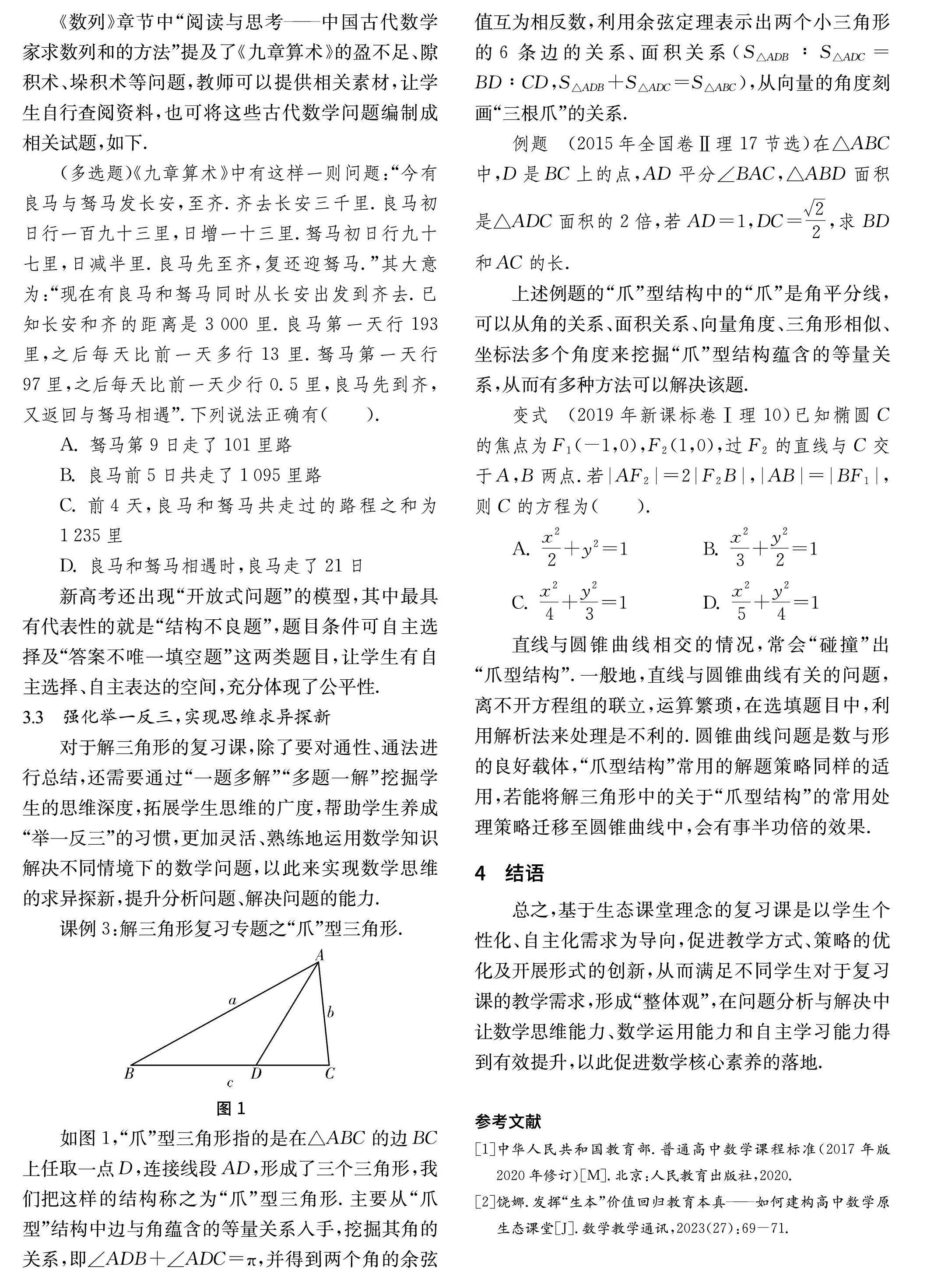 摘 要:复习课是高中数学的重要课型之一,按课时的教学使学生在学习时“只见树木,不见森林”,从而导致知识结构零散、缺乏内在逻辑联系,在应用时缺乏迁移力,需通过复习课帮助学生建立“整体观”,以提高分析问题、解决问题的能力.生态课堂的建构重视学生的主体地位,本文将生态课堂的理念引入高中数学复习课,结合相应(剩余4734字)