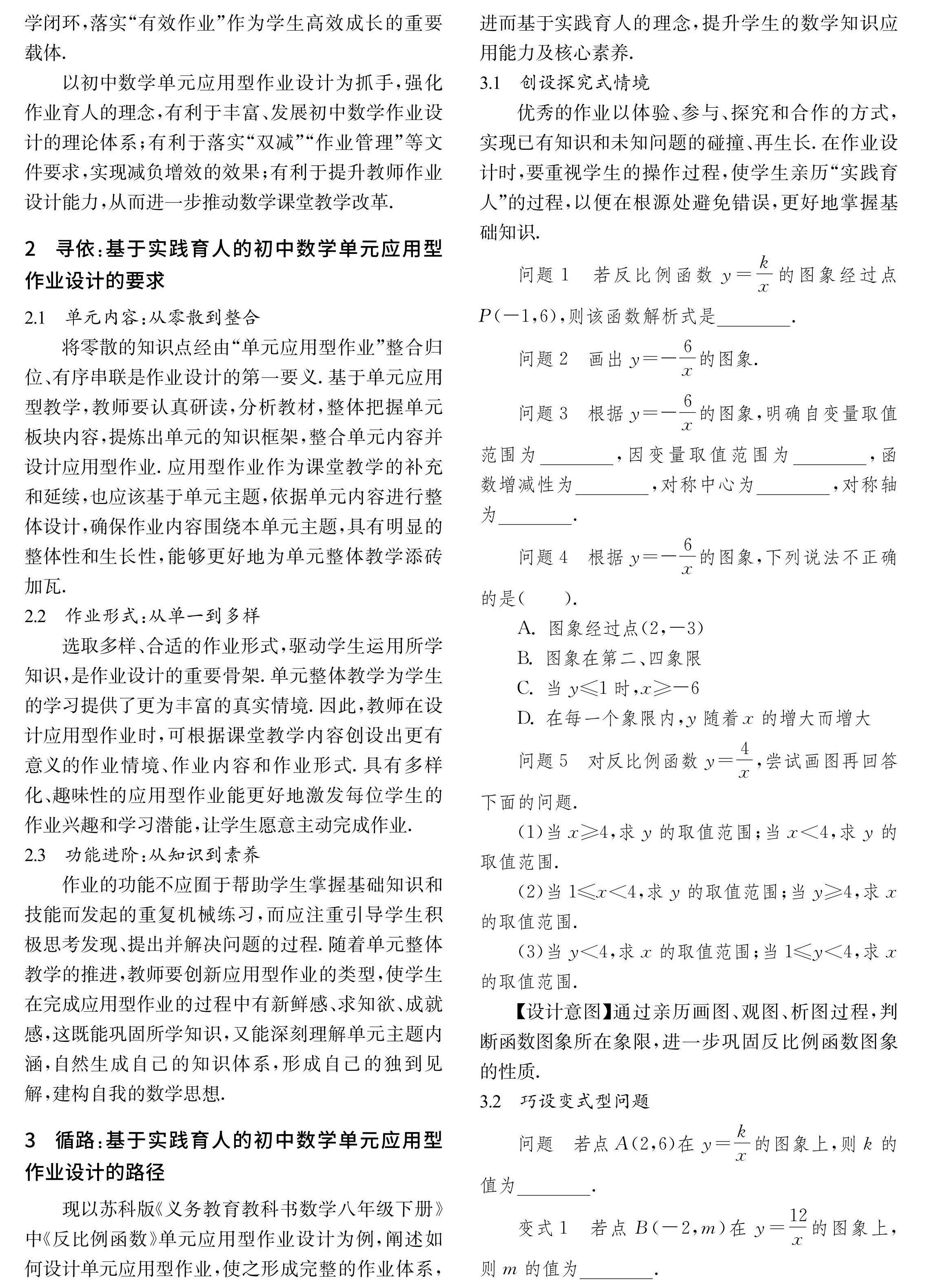 询因•寻依•循路:基于实践育人的初中数学单元应用型作业设计探讨