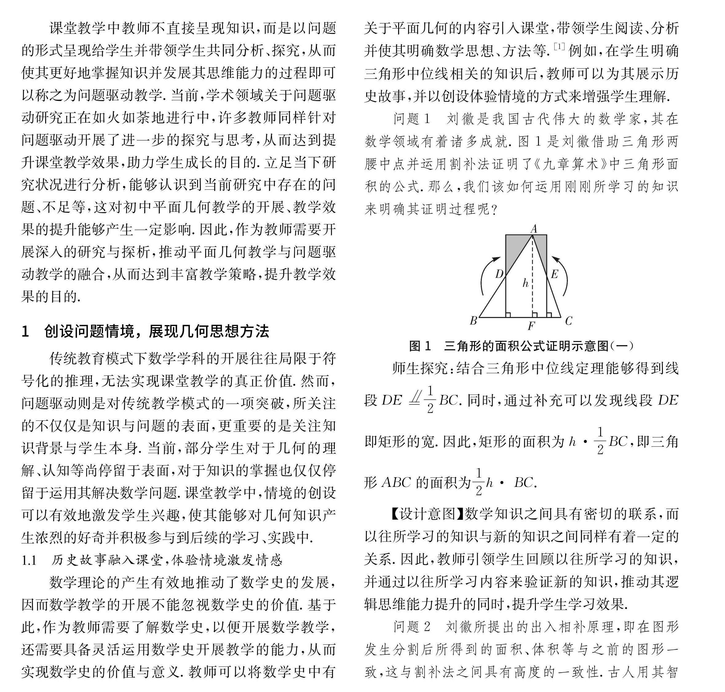 摘 要:有关问题驱动教学在数学教学中应用的相关研究取得了一定成效,并为诸多教师提供了开展教学的参考.但是,针对初中平面几何方面的研究较少,无法形成相应的研究体系.鉴于此,本文从问题驱动的角度出发,以实践的形式探究如何将问题驱动教学融入初中平面几何教学,完善当前研究的同时为广大数学教师提供开展教学的参(剩余4075字)