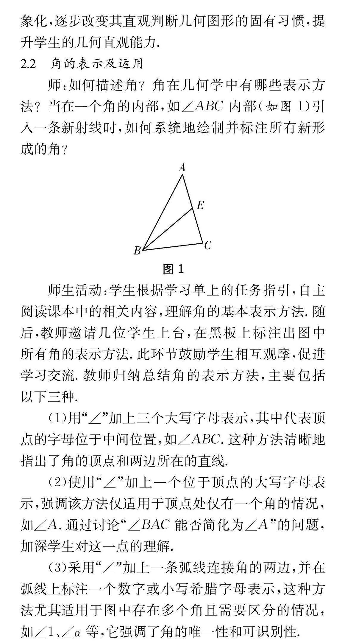 基于角的概念分析角的表达方式的教学设计探索
