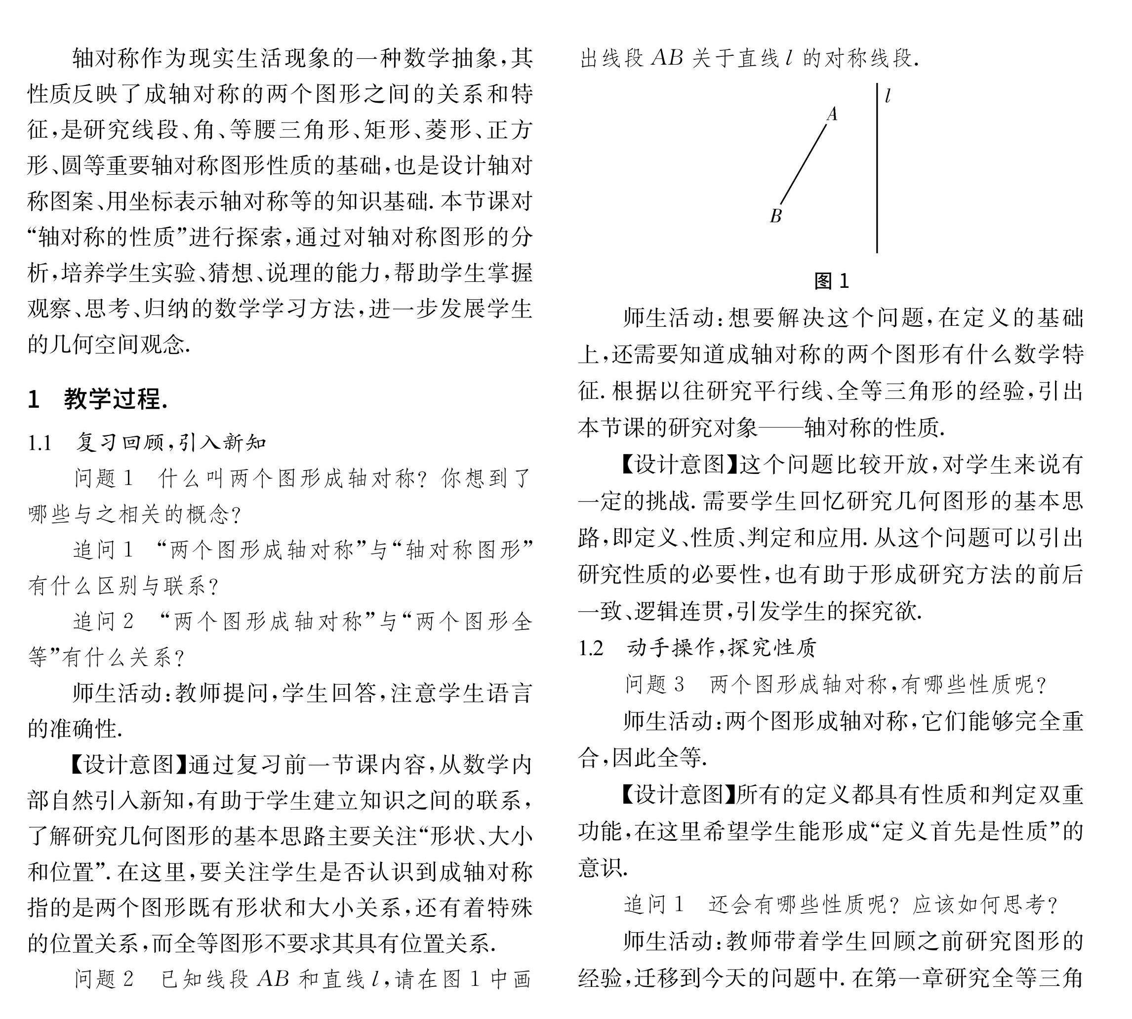 摘 要:轴对称是现实生活中广泛存在的一种现象,是密切联系数学与现实生活的重要内容.本文基于轴对称的概念,从构造轴对称图形开始,引出研究对象——轴对称的性质,通过观察、操作、猜想、证明等一系列的数学活动,探索、发现和概括轴对称的性质,并利用其解决相关问题,为接下来研究线段、角、等腰三角形等轴对称图形的(剩余4067字)