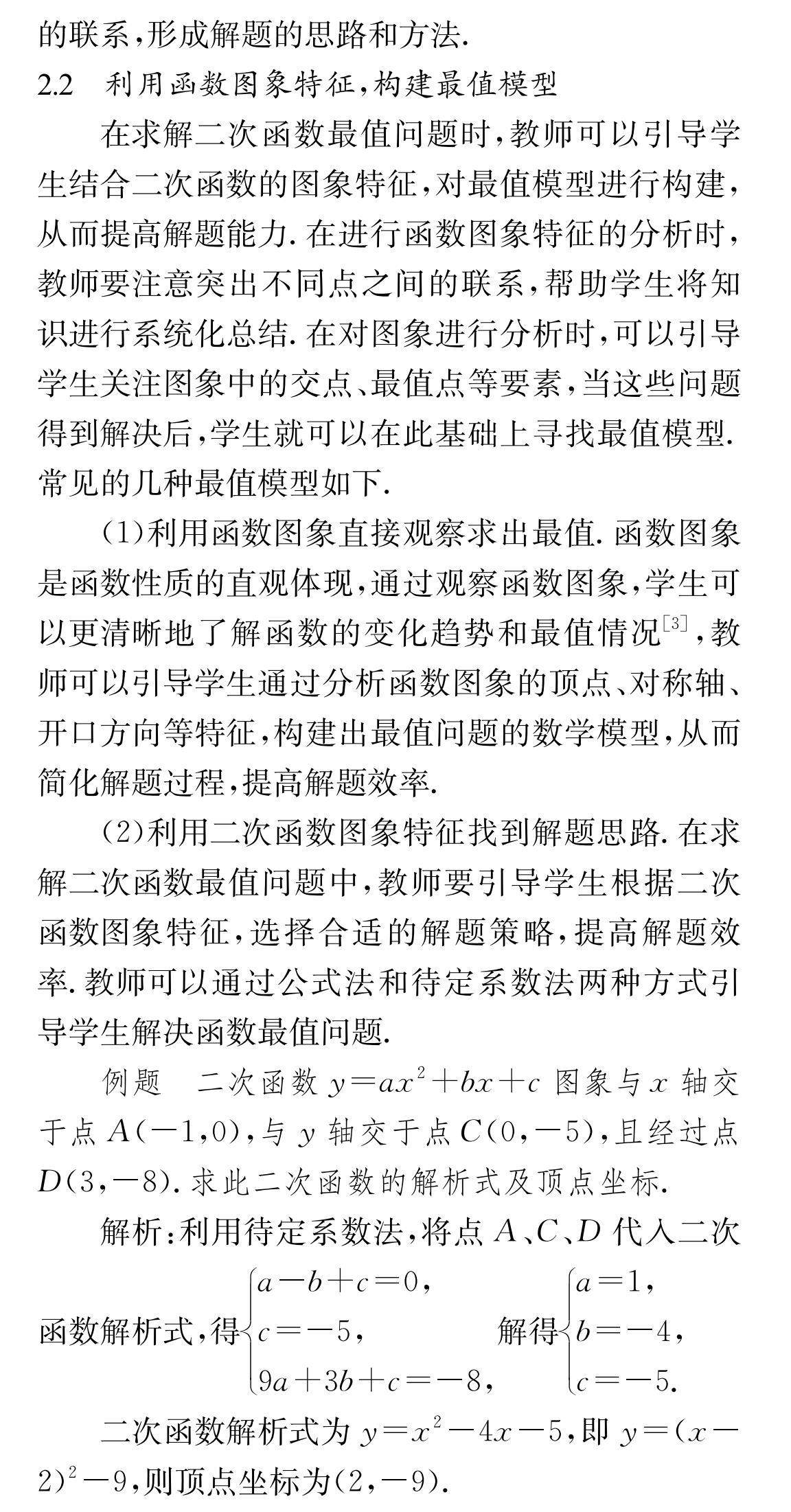 摘 要:随着中考的不断改革,二次函数最值问题又一次成为中考热点题型.在近年中考中,多数学生表示二次函数的最值压轴问题相对于其他问题来说难度更大,且考查重点在于学生对二次函数概念的理解和掌握情况,以及对二次函数图象与性质的分析能力.结合多年教学经验来看,这类题型大多以代数式、顶点坐标、对称轴等形式出现(剩余3373字)