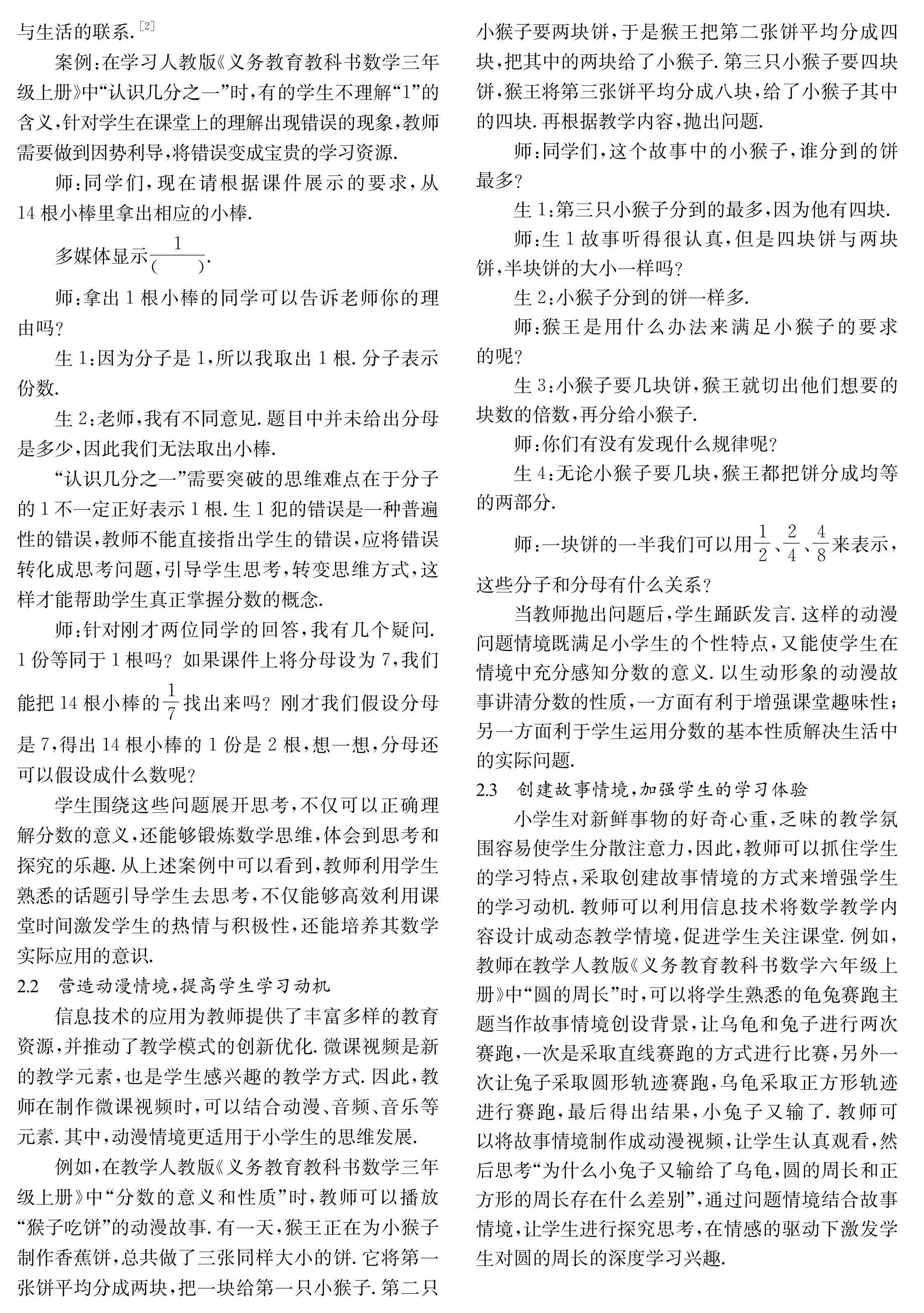 基于信息技术的小学数学课堂情境创设研究