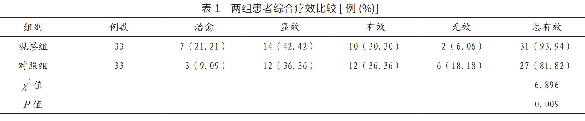 【摘要】目的 探究分析早期综合康复治疗急性脑梗死的疗效及临床应用价值。方法 抽取自2020年4月至2021年6月桂平市人民医院收治的66例急性脑梗死患者为观察对象并进行前瞻性分析,根据病例编号的数字奇偶性将其划分为对照组和观察组两组,每组均为33例患者。对照组患者均采取常规治疗,观察组患者均在常规治疗的基础上联合采取早期综合康复治疗,对比两组患者的临床疗效、治疗前后神经功能缺损评分、肢体运动能力评分和生活质量评分。(剩余4888字)