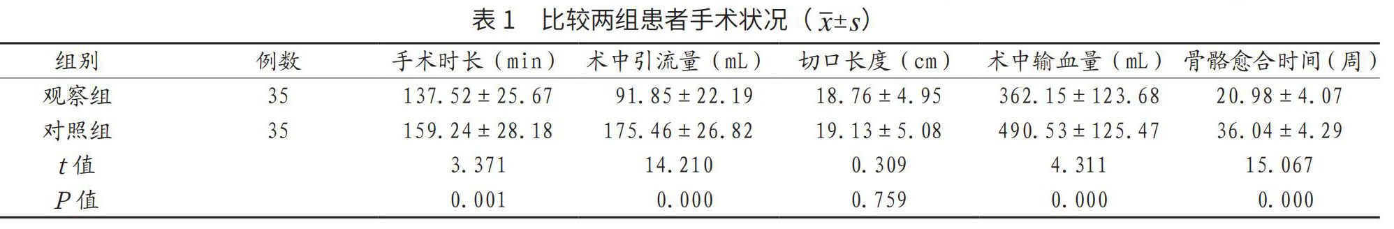 【摘要】目的 研究对四肢创伤骨折后骨不连患者应用带锁髓内钉治疗的效果。方法 选取70例四肢创伤骨折后骨不连患者(收治时间为2020年2月至2021年2月),按照随机数字表法分为对照组(35例,应用加压钢板治疗)和观察组(35例,应用带锁髓内钉治疗),比较两组患者手术状况、运动功能、日常生活能力、骨钙素水平及并发症发生状况。(剩余4901字)