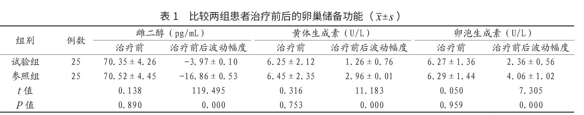 【摘要】目的 分析对有生育需求的卵巢子宫内膜异位囊肿患者实施腹腔镜手术联合促性腺激素释放激素激动剂(GnRH-a)治疗的有效性。方法 选取吴川市妇幼保健院2017年7月至2020年7月收治的有生育需求的卵巢子宫内膜异位囊肿患者50例,经双盲法均分为试验组与参照组,各25例,试验组予以腹腔镜联合GnRH-a治疗,参照组行腹腔镜治疗,对比两组患者治疗前后的卵巢储备功能(雌二醇、黄体生成素、卵泡生成素)及随访1年后的妊娠率、妊娠结局(自然分娩、足月生产、产后出血)。(剩余3733字)