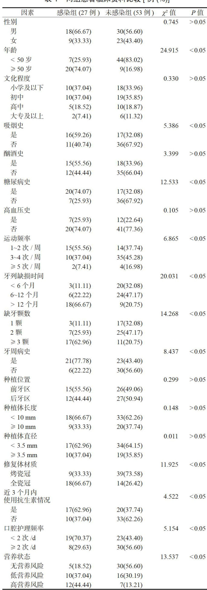 牙列缺损患者经口腔种植修复后发生口腔感染的影响因素分析