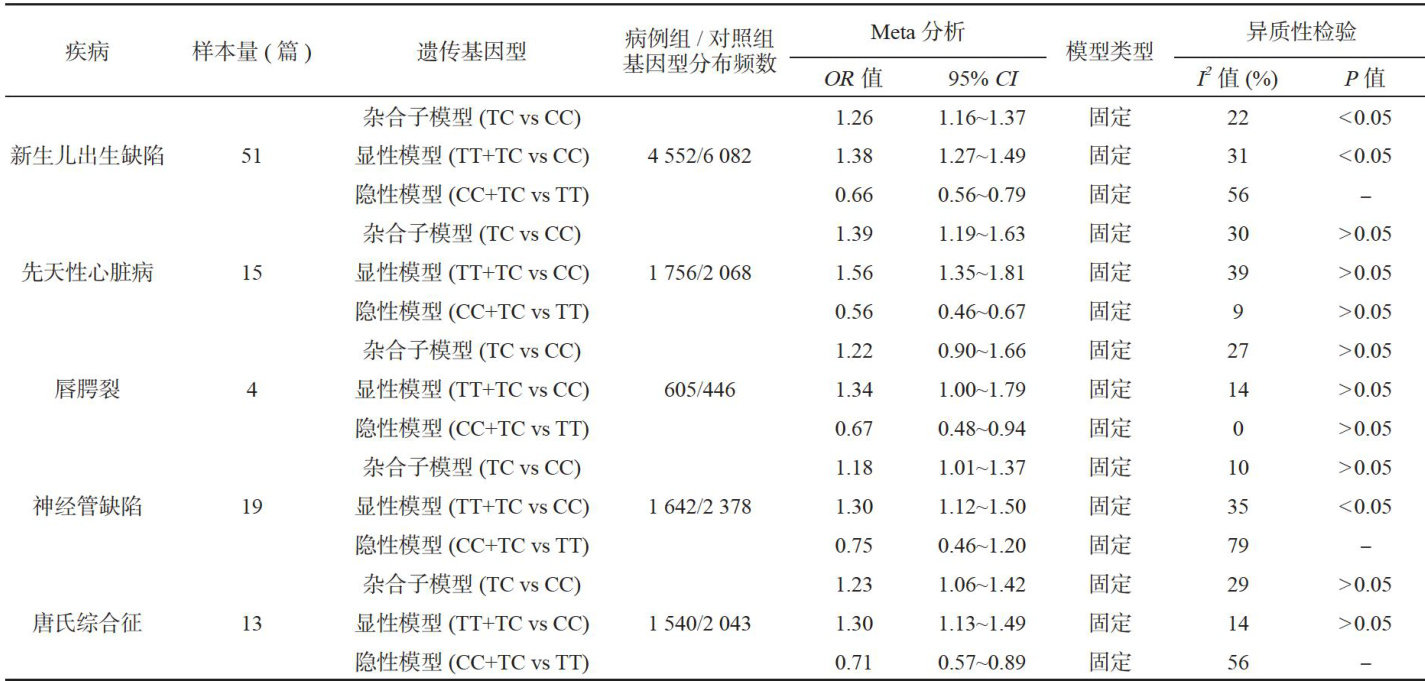 亚甲基四氢叶酸还原酶C677T、甲硫氨酸合成酶还原酶A66G基因多态性与新生儿出生缺陷相关性的Meta分析