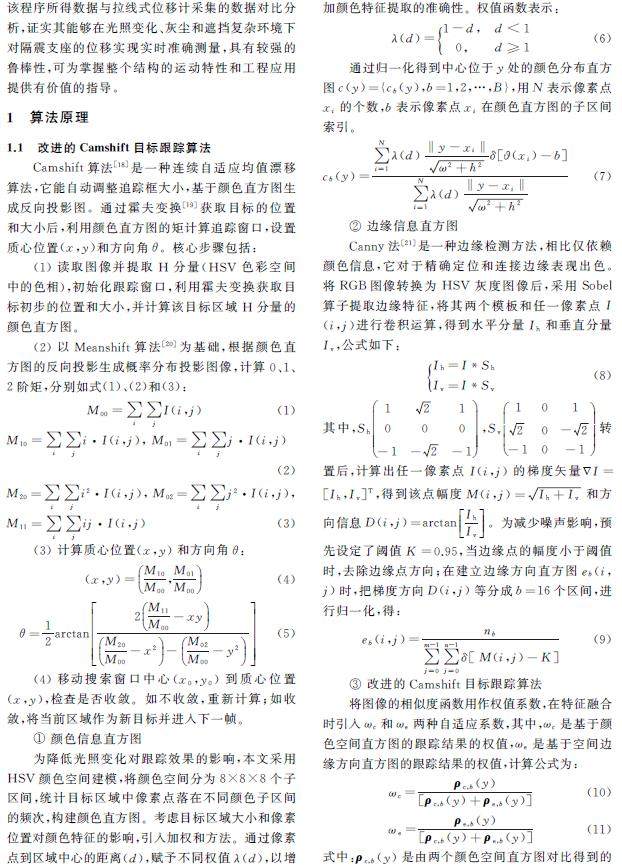 融合改进的Camshift与Kalman滤波的复杂环境下隔震支座位移测量研究