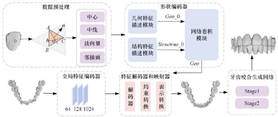 Key words: automatic tooth alignment; mesh feature; shape encoder;tooth occlusion generating network