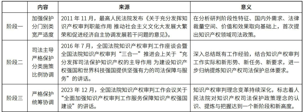 知识产权制度的正当性源于激励论,即通过授予排他性权利刺激知识生产及其投资。故在产权属性外,知识产权制度也是一种公共政策工具。而知识产权审判的重要功能就在于通过司法强制保障和实现知识产权制度对于知识生产的内在激励。为深入贯彻党和国家“加大知识产权保护力度”宏观政策,人民法院先后三次确立不同阶段的知识产权司法政策体系,核心均体现为“加强保护”“严格保护”等强化保护理念。(剩余11455字)