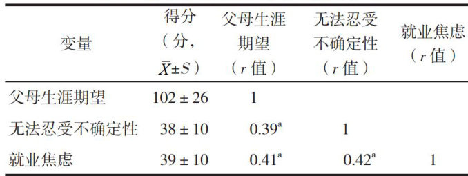 【Key words】Parental career expectations; Intolerance of uncertainty; Employment anxiety