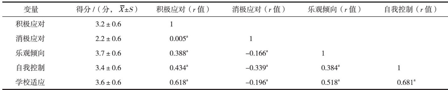 【Abstract】Objective To analyze the school adaptation among university freshmen in Jiangsu Province and its influencing factors,providing empirical support for formulating interventionpolicies to enhance the adaptation level of university freshmen.MethodsA cluster randomsampling method was used to recruit 2057 undergraduatefreshmen fromfiveuniversitiesinSuzhou,Taizhou,andHuai'ancitiesofJiangsuProvincebetween November and December 2O23.Questionnaires were conducted using the Self-Control Scale (SCS),the Coping Style Scale (SCSQ),theColege Student Adaptation Scale (CCSAS),and the LifeOrientation Test-Revised (LOT-R). Independent sample t -testsand one-way analysis of variance (ANOVA) were used to compare the scores of various variablesacross diferent demographic characteristics.Pearson correlationanalysis and multiple linearregression analysis were employed to examine the corelationsbetween variables.ResultsMultiple regression analysis showed thatself-control,positivecoping styles,andoptimism wereallpositivelycorrelated with theschooladaptationof freshmen ( β =0.212-0.444, P<0.001 ),while the place of origin was negatively correlated with theschool adaptation of freshmen ( β=-0.033 P =0.018).Conclusion The school adjustment of college freshmen in Jiangsu Province is influencedby multiplefactors.Among these,self-controlability,positivecoping style,andoptimismaresignificant predictors of adjustment levels.
