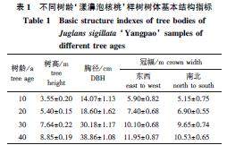 ‘漾濞泡核桃’不同树龄冠层结构特性与果实产量关系