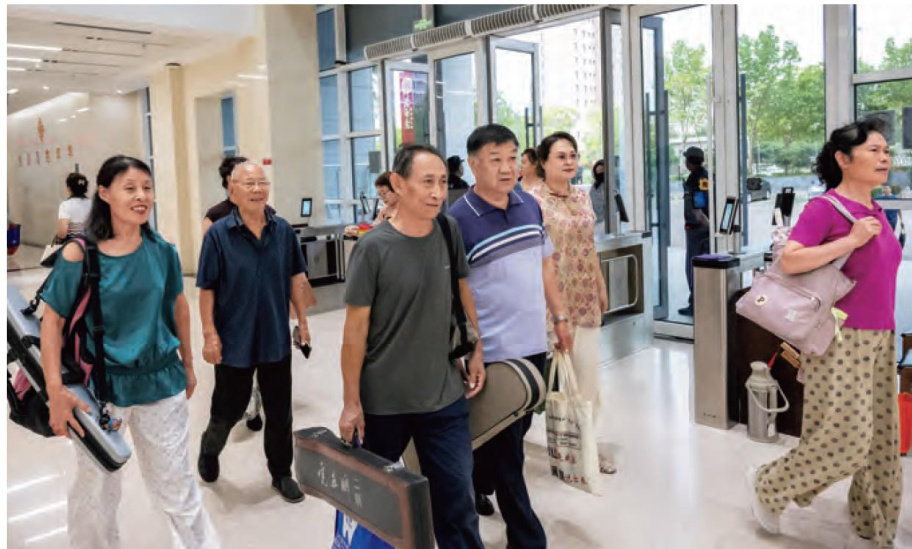 秋日的晨光揉着桂花香漫进的校园,路两边的梧桐叶略染浅黄。一大早,教学楼前的院子里便热闹起来,这里正迎接一批鬓染霜华的“新生”,他们有的擦着毛笔、有的背着吉他、有的拉着装满乐谱的箱子,眼里满是对新知的渴望。
