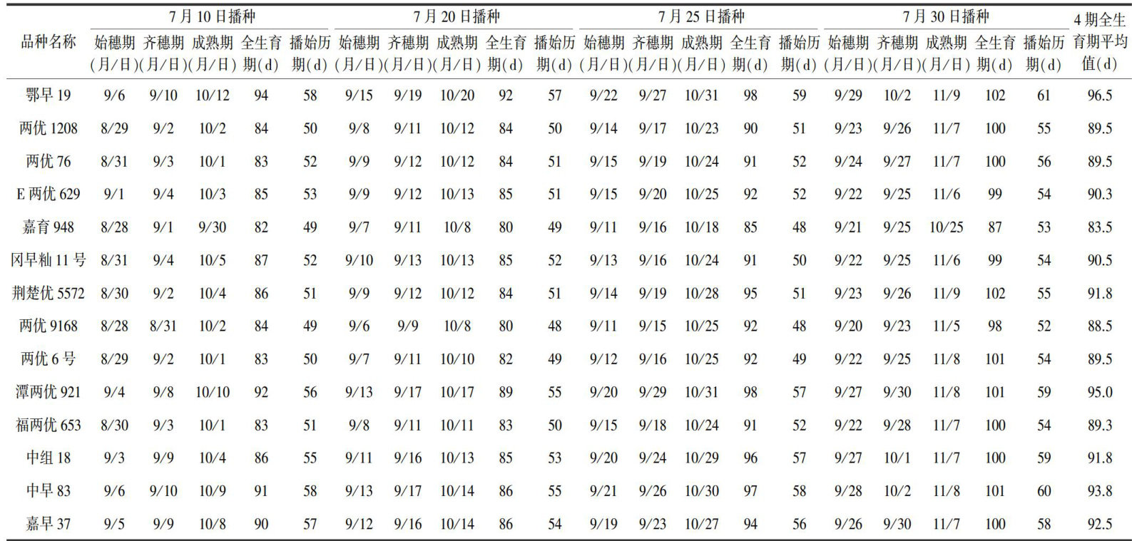 早稻品种秋季直播筛选试验