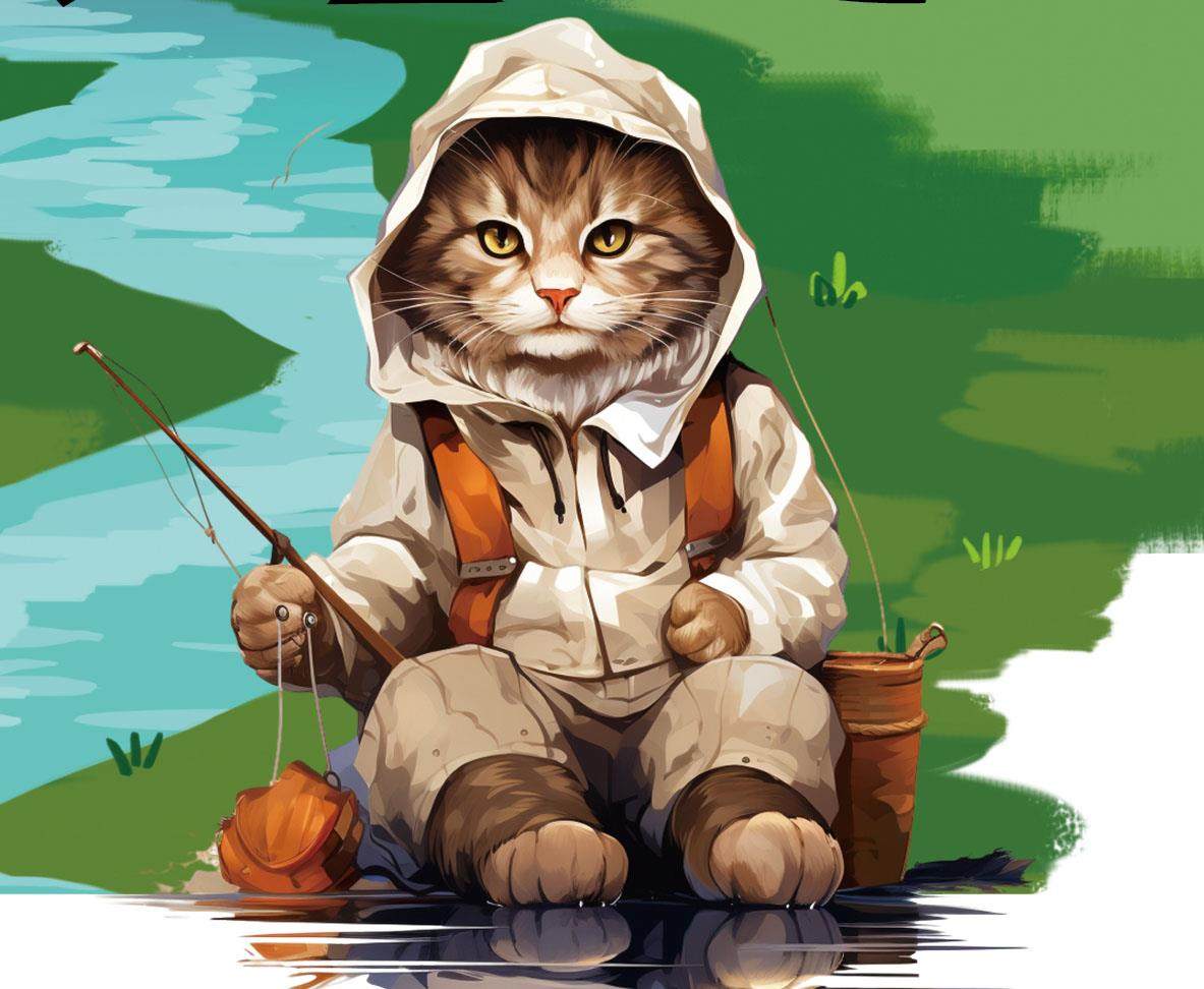 小花猫在河边钓鱼,钓了好久也没钓上来一条鱼。