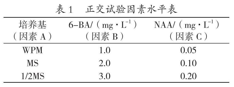 摘要:【目的】为探究油画婚礼紫露草组培快繁技术。【方法】以嫩茎为外植体,对其进行不定芽诱导、继代增殖、生根及生根苗移栽的研究。主要采用正交试验法探究基础培养基、6-BA、NAA对增殖的影响,并探究基础培养基、IBA对生根的影响。【结果】油画婚礼紫露草组培快繁适宜的诱导培养基为1/2 MS+1.0 mg/L 6-BA + 50 mg/L Vc +0.2 mg/L NAA +30 g/L蔗糖+6.0 g/L卡拉胶,pH值6.0;适宜的增殖培养基为1/2MS+3.0 mg/L 6-BA +50 mg/L Vc + 0.1 mg/L NAA +30 g/L蔗糖+6.0 g/L卡拉胶,pH值6.0;适宜的生根培养基为WPM+0.5 mg/L IBA +20 g/L蔗糖+6.5 g/L卡拉胶,pH值6.0。(剩余6175字)