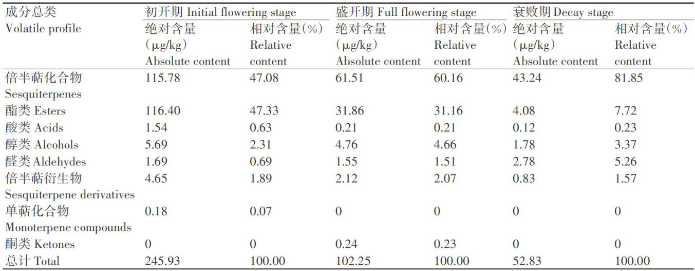 不同开花期含笑花被片挥发性成分的HS-SPME/GC-MS分析