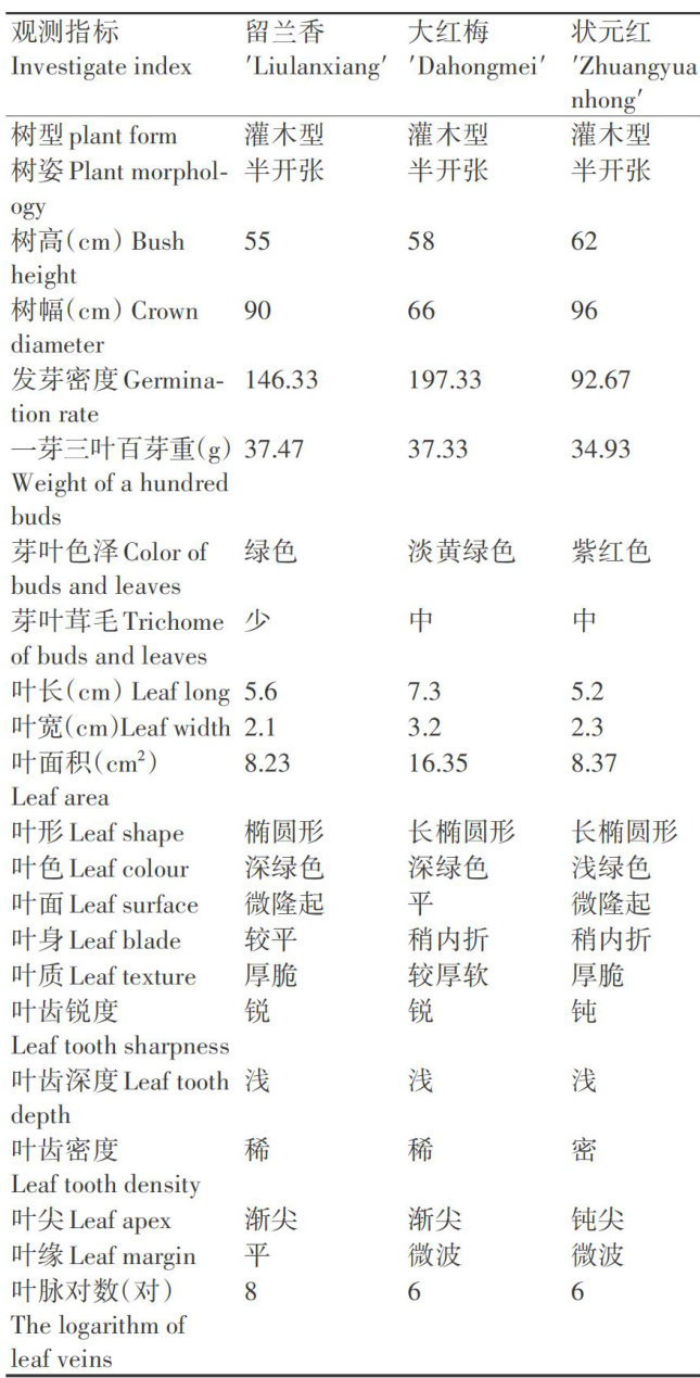 3份武夷名丛乌龙茶的植株性状及 制茶品质比较分析