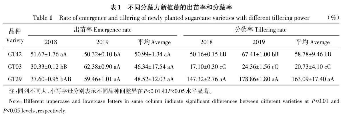 甘蔗是多年收获的重要糖料作物,生产上由新植蔗和宿根蔗组成,宿根蔗的比重较大,一般占总种植面积的70%~80%,甘蔗分蘖率与其宿根性、单产呈极显著正相关,品种分蘖越强的宿根性越好[12]。(剩余6219字)