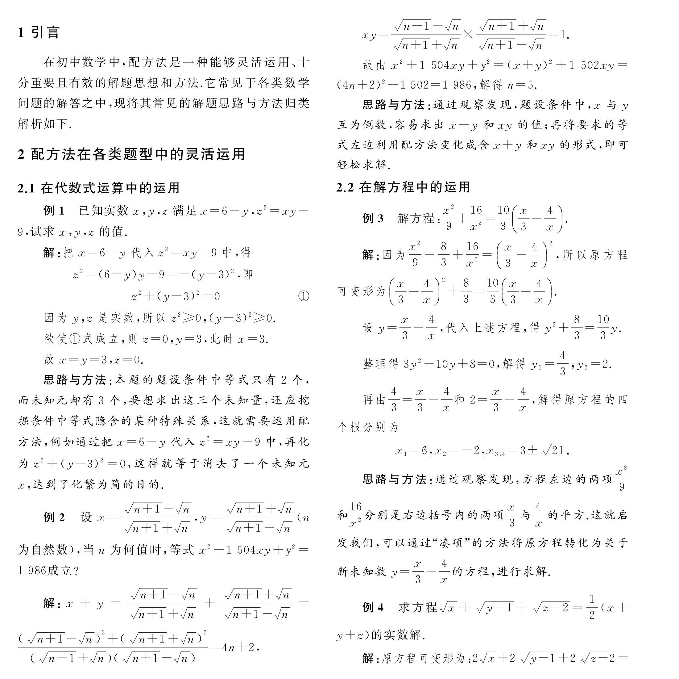 配方法在初中数学解题中的灵活运用