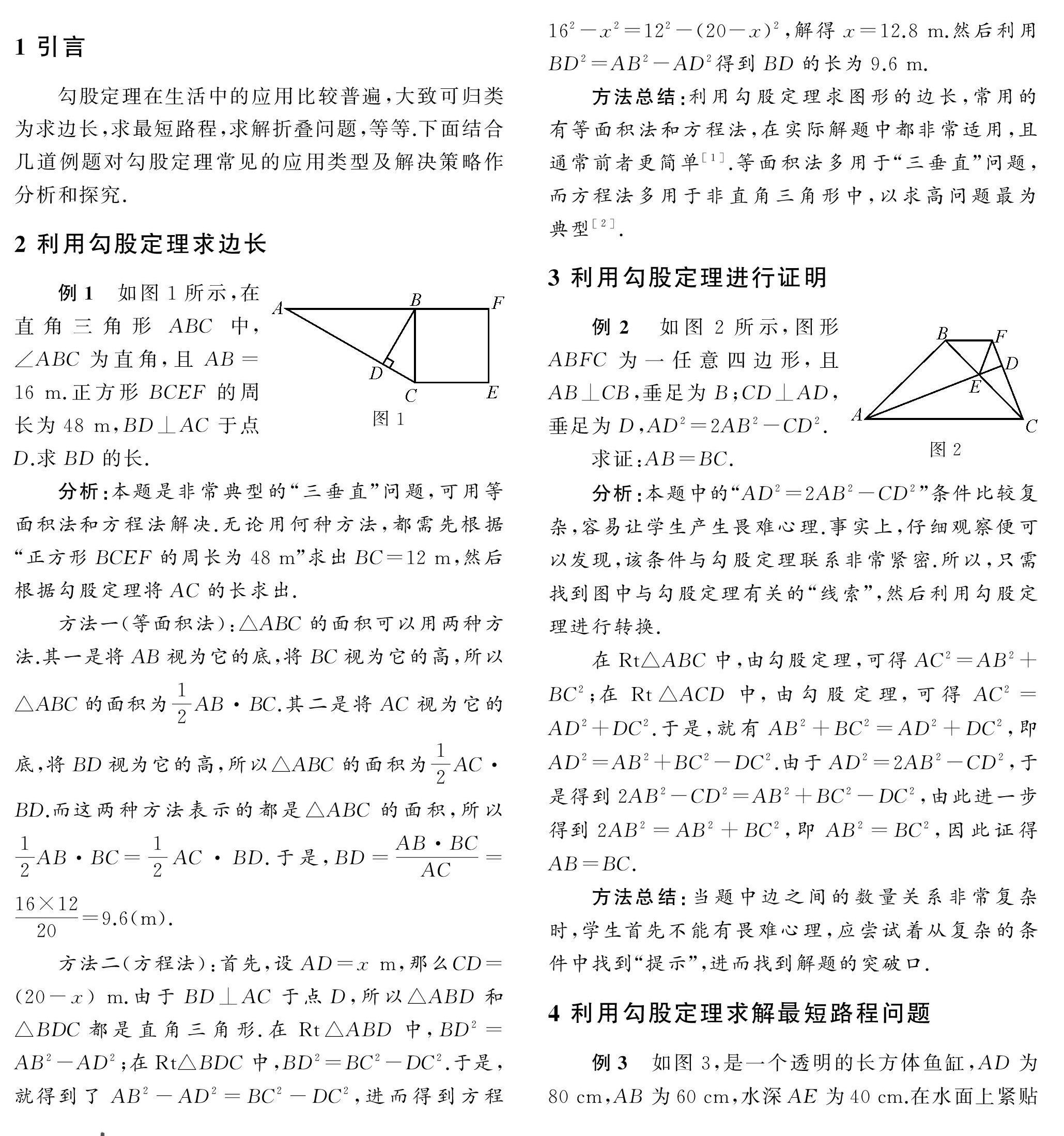 勾股定理在生活中的应用比较普遍,大致可归类为求边长,求最短路程,求解折叠问题,等等.下面结合几道(剩余3070字)