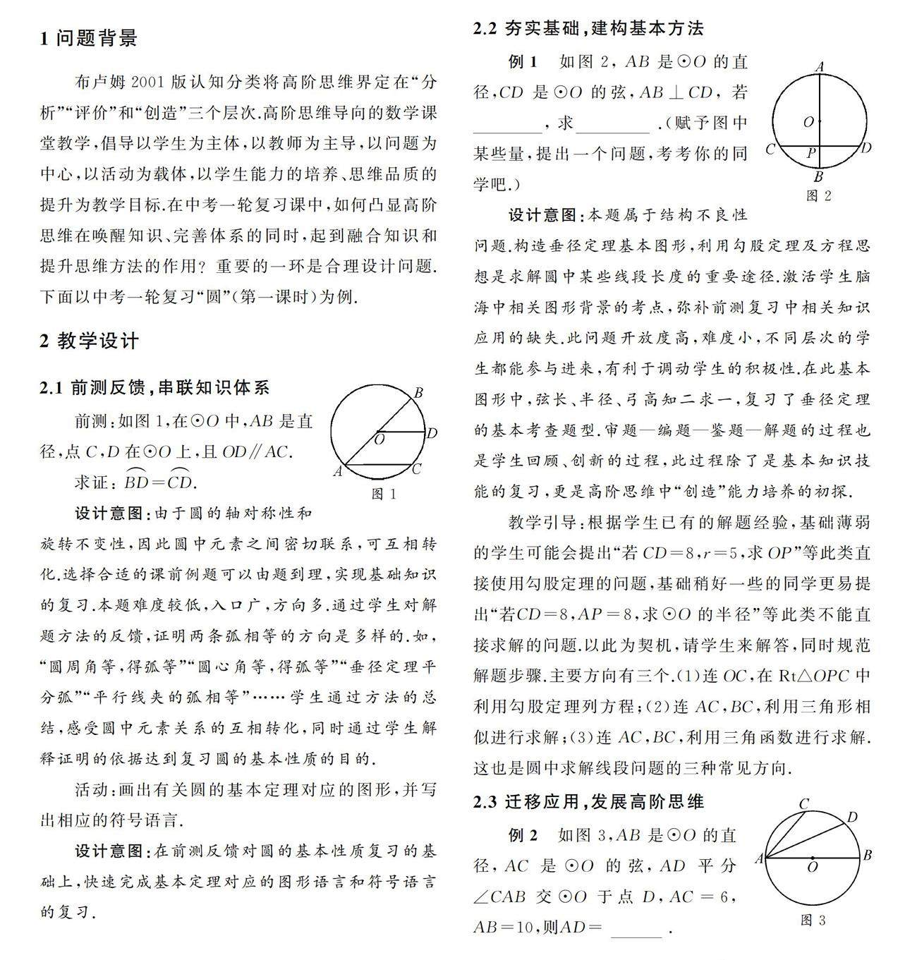 布卢姆2001版认知分类将高阶思维界定在“分析”“评价”和“创造”三个层次.高阶思维导向的数学课堂教学,倡导以学生为主体,以教师为主导,以问题为中心,以活动为载体,以学生能力的培养、思维品质的提升为教学目标.在中考一轮复习课中,如何凸显高阶思维在唤醒知识、完善体系的同时,起到融合知识和提(剩余2579字)