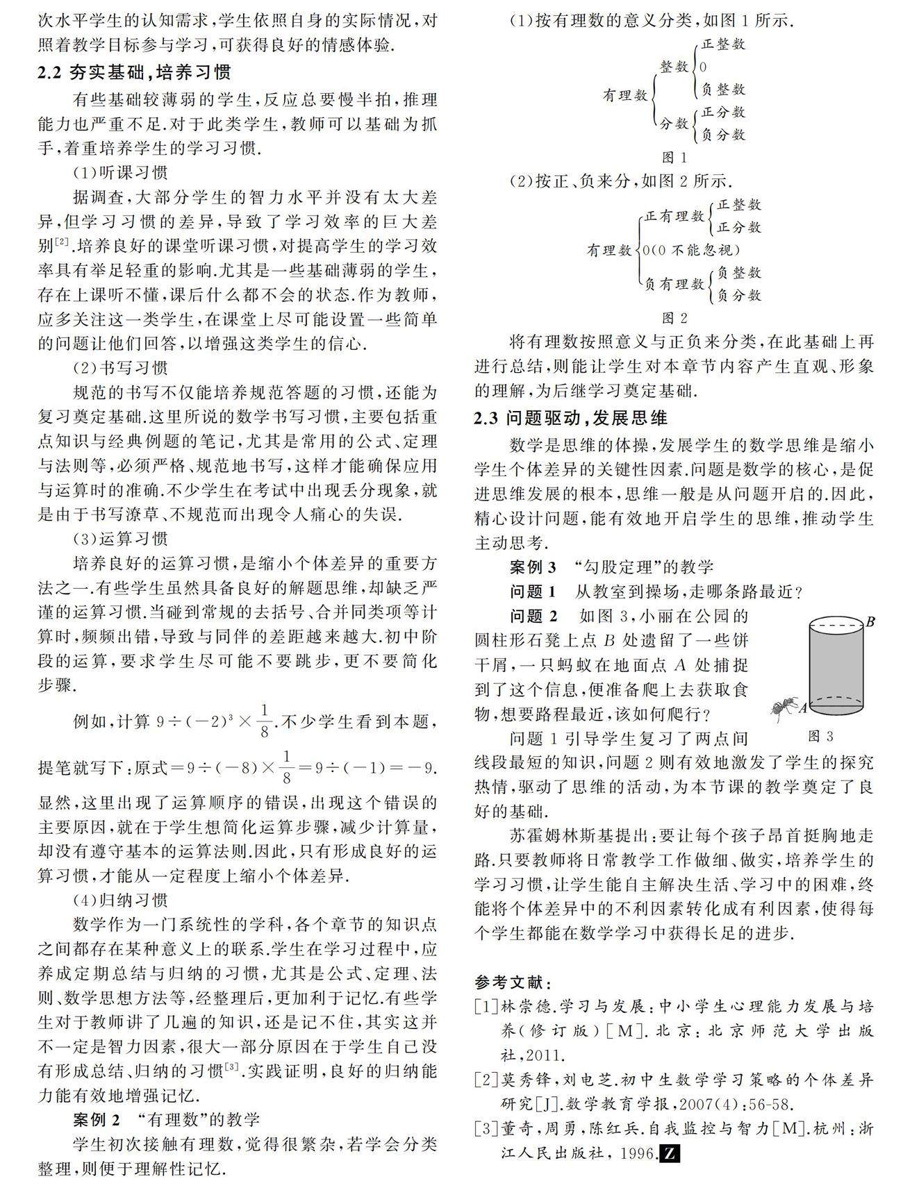 教学中,学生获得的知识量与学习效率有着很大的关系,而影响学习效率的因素多且复杂.其中,个体差异是影响学习效率的重要因素之一.数学教育一直倡导“因材施教、学有特色、鼓励冒尖、允许落后”等理念,就是考虑到学生与学生之间存在着一定的个体差异.因此,笔者特针对个体差异的主要成因进行了研究,并结合自身的教学经(剩余3191字)